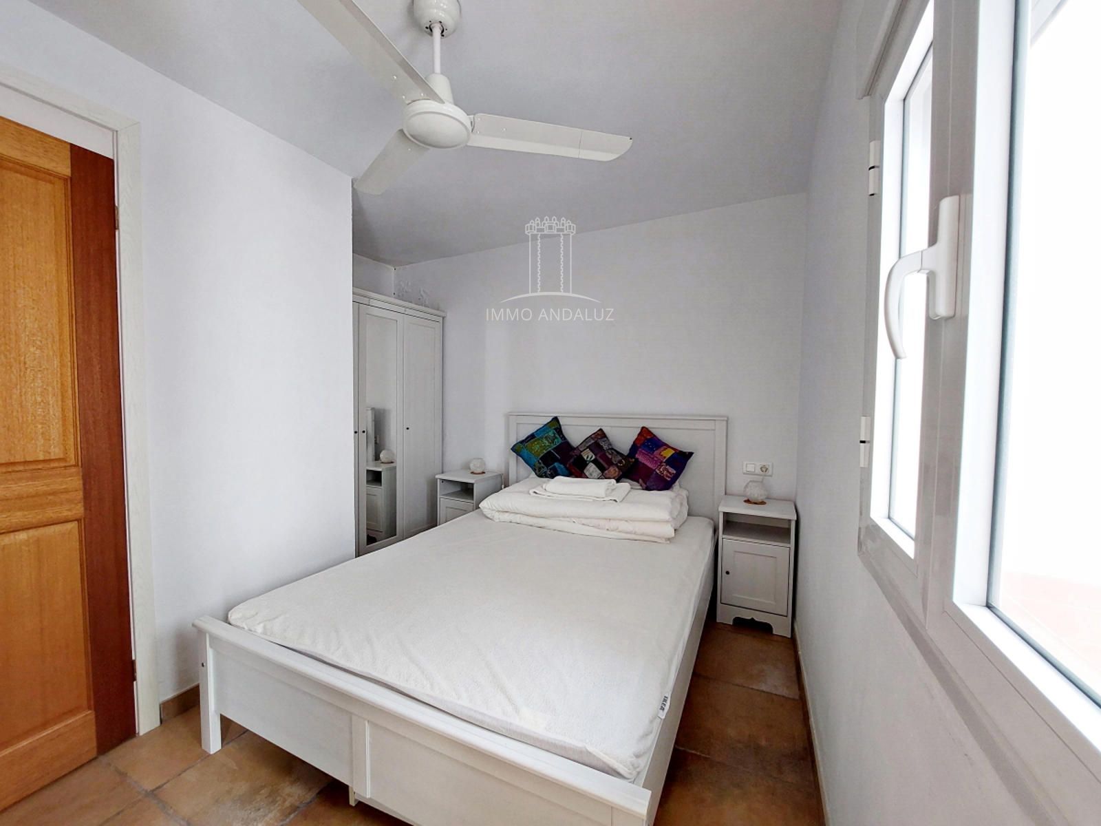 Volviendo al patio central, unos escalones exteriores de piedra conducen al cuarto dormitorio doble con cuarto de baño con ducha. Este conduce a una cocina americana de buen tamaño con una puerta que da a la misma terraza mencionada anteriormente. Una puerta lateral acristalada de esta cocina americana conduce a la terraza superior soleada y a un pequeño jardín con un limonero.